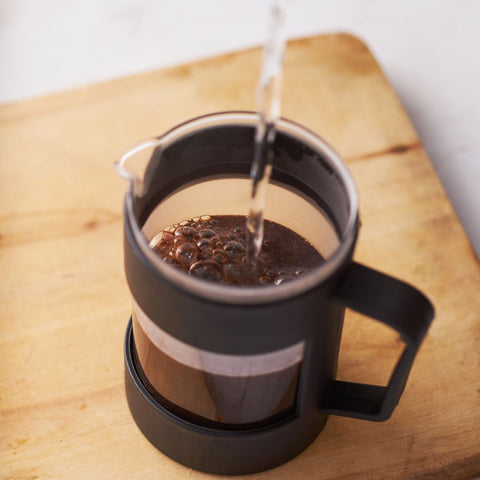 - Brew: Place the lid on the French press with the plunger pulled all the way up to retain heat. Let the coffee steep for about 4 minutes. Adjust steeping time depending on your taste preference.