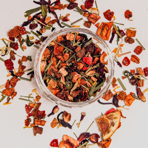 Ingredients:Apple Pieces, Hibiscus petals, Rosehip, Lemon Pieces, Lime Pieces, Natural flavors (organic compliant).