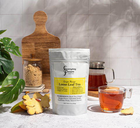 Tea lovers unite. Enjoy a unique blend of Tahitian mango with a nice tingly Thai ginger. A perfect balance of floral and spicy, this tea has a smooth and sweet finish. It's an extraordinary cup that will leave you feeling refreshed.